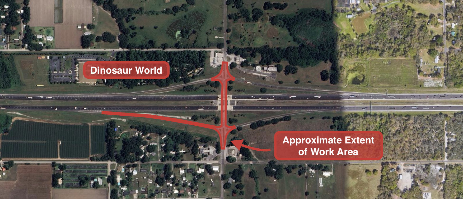 The SR 566 (Thonotosassa Road) interchange will be widened from two to four lanes between the ramps. The project includes adding a new northbound-to-eastbound right-turn lane onto I-4 and installing a traffic signal at the base of the westbound off-ramp where there is not one already. - Project Details: